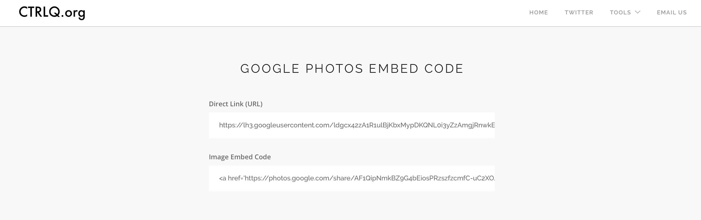 ctrlqさんのEmbed Google Photosにペーストして、埋め込みコードをコピー